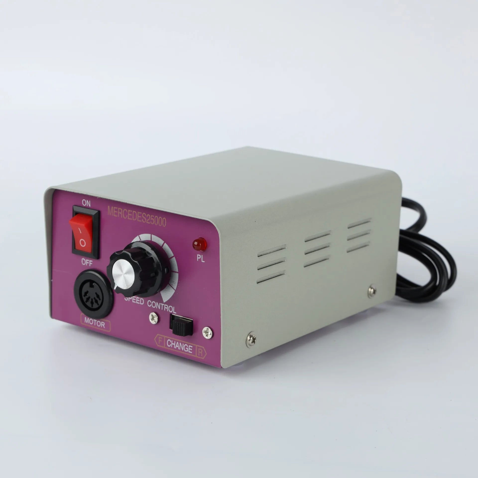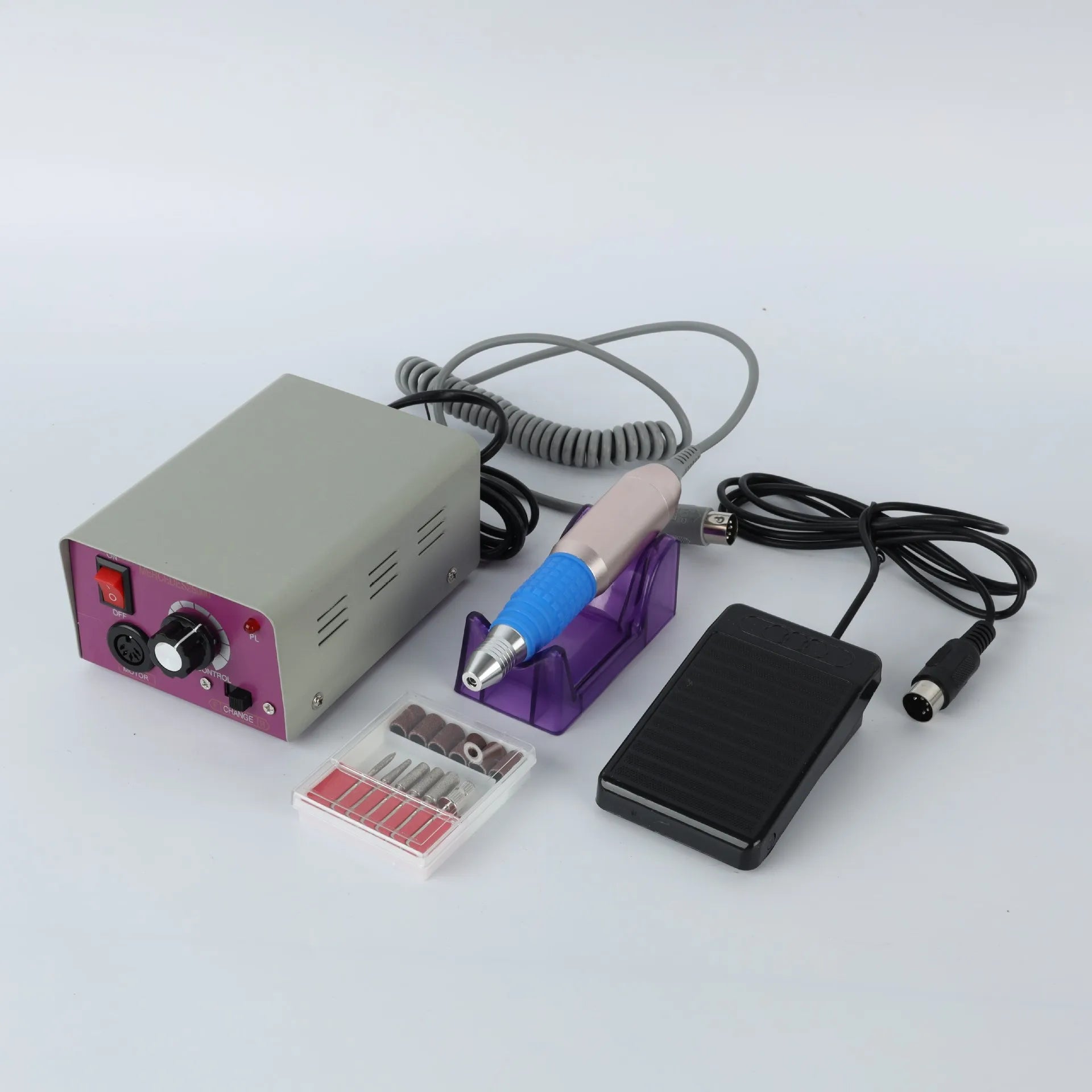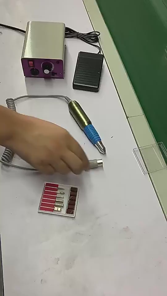 Το πεντάλ απελευθερώνει τα χέρια για άνεση στη ροή εργασίας, ενώ τα 6 εξαρτήματα καλύπτουν διαφορετικές χρήσεις (λείανση, αφαίρεση gel/ημιμόνιμου, περιμετρικές λεπτομέρειες κ.ά.).