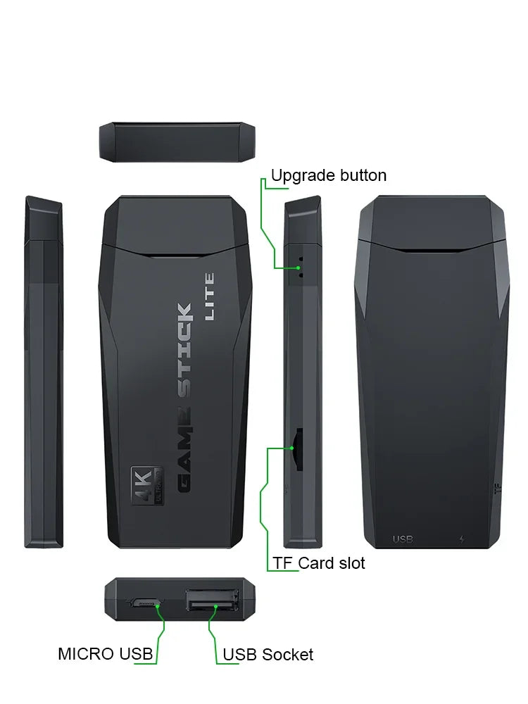 Η ΚΟΝΣΟΛΑ ΠΑΙΧΝΙΔΙΩΝ GAME STICK 4K ΜΕ 15000+ ΠΑΙΧΝΙΔΙΑ & 2 ΑΣΥΡΜΑΤΑ ΧΕΙΡΙΣΤΗΡΙΑ Αφέρνει ξανά στο σαλόνι σας την απόλυτη retro εμπειρία! Με 15000+ προεγκατεστημένα παιχνίδια, μπορείτε να απολαύσετε αμέτρητους κλασικούς τίτλους χωρίς καμία εγκατάσταση. Απλά συνδέστε το stick στην τηλεόρασή σας μέσω HDMI και ξεκινήστε το παιχνίδι!