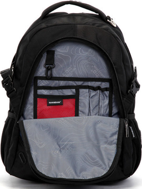 SUISSEWIN AIRFLOW ΑΔΙΑΒΡΟΧΟ ΣΑΚΙΔΙΟ ΠΛΑΤΗΣ 26L ΜΑΥΡΟ ΜΕ ΘΗΚΗ LAPTOP